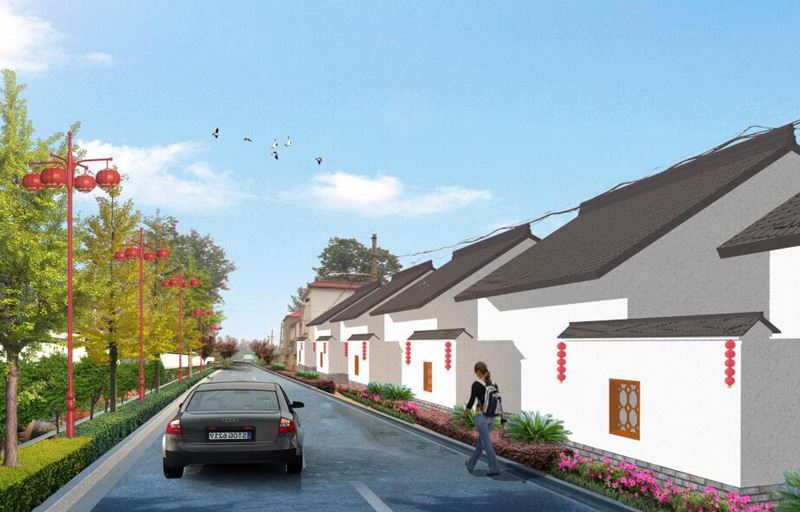 建筑方面,建議將沿街建筑墻面粉刷成白色,勒腳采用青磚貼面,墻面上的窗洞采用木質(zhì)帶有傳統(tǒng)花紋的格柵。